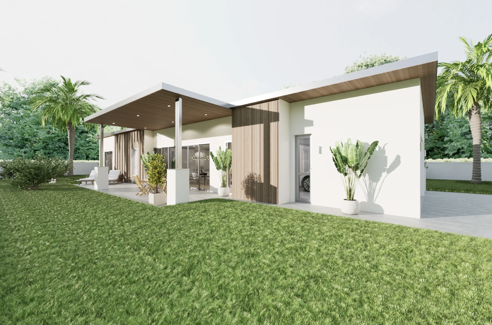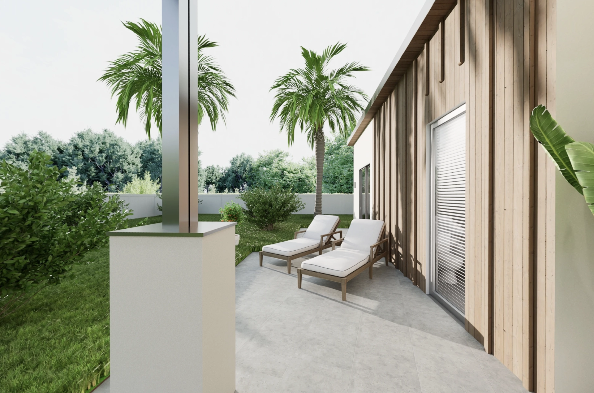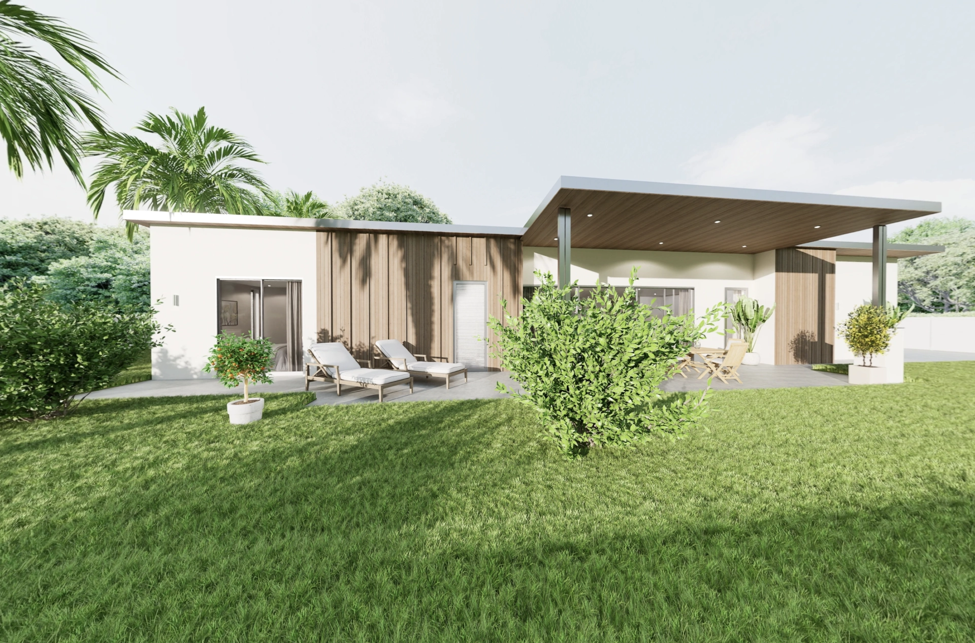 - Board & batten + plaster cladding combination