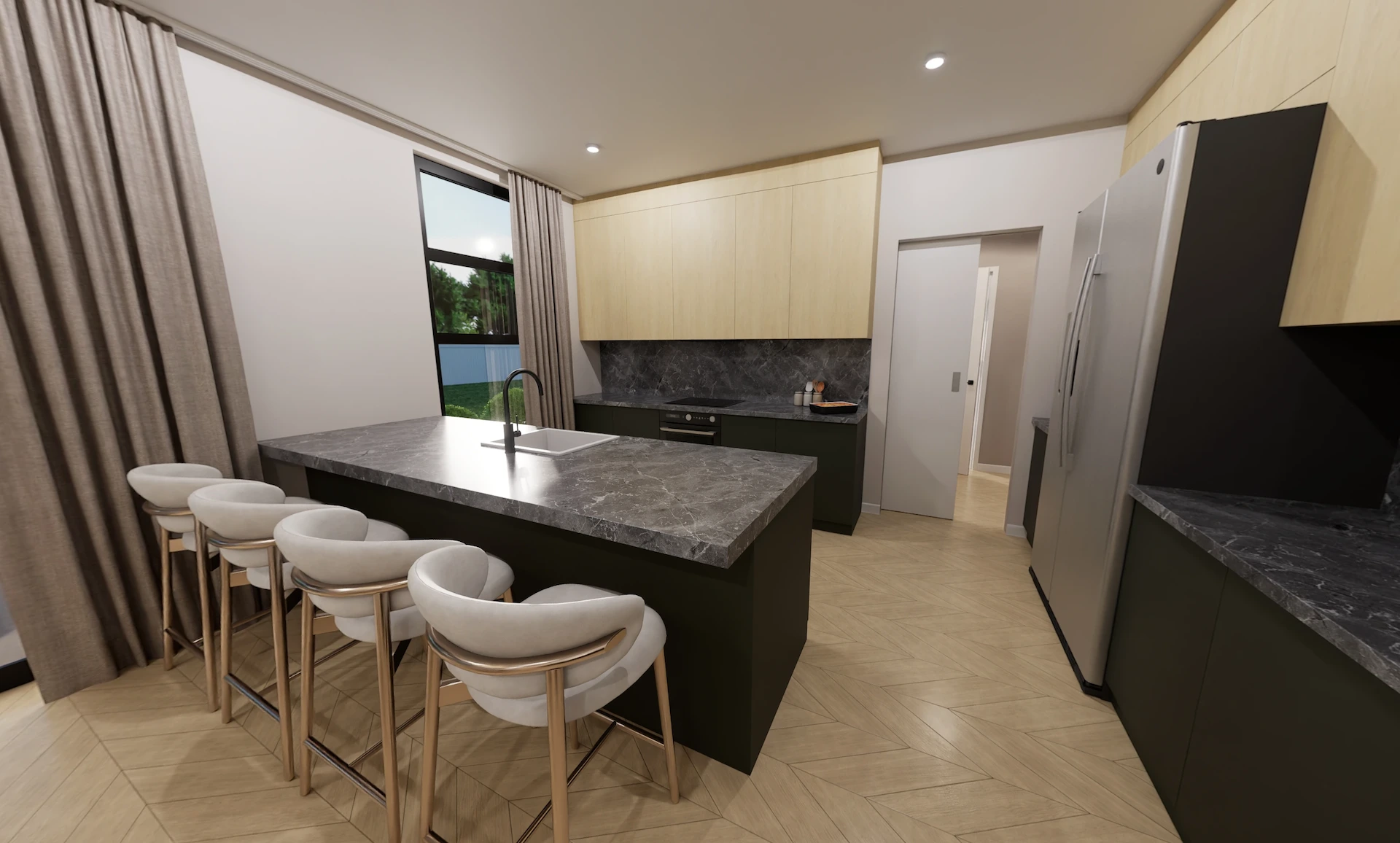 Te Tūrangawaewae is designed to maximise northern outlooks on wider-than-standard sections. With expansive glazing and dual living zones, this home embraces light, flow, and connection to outdoor spaces.