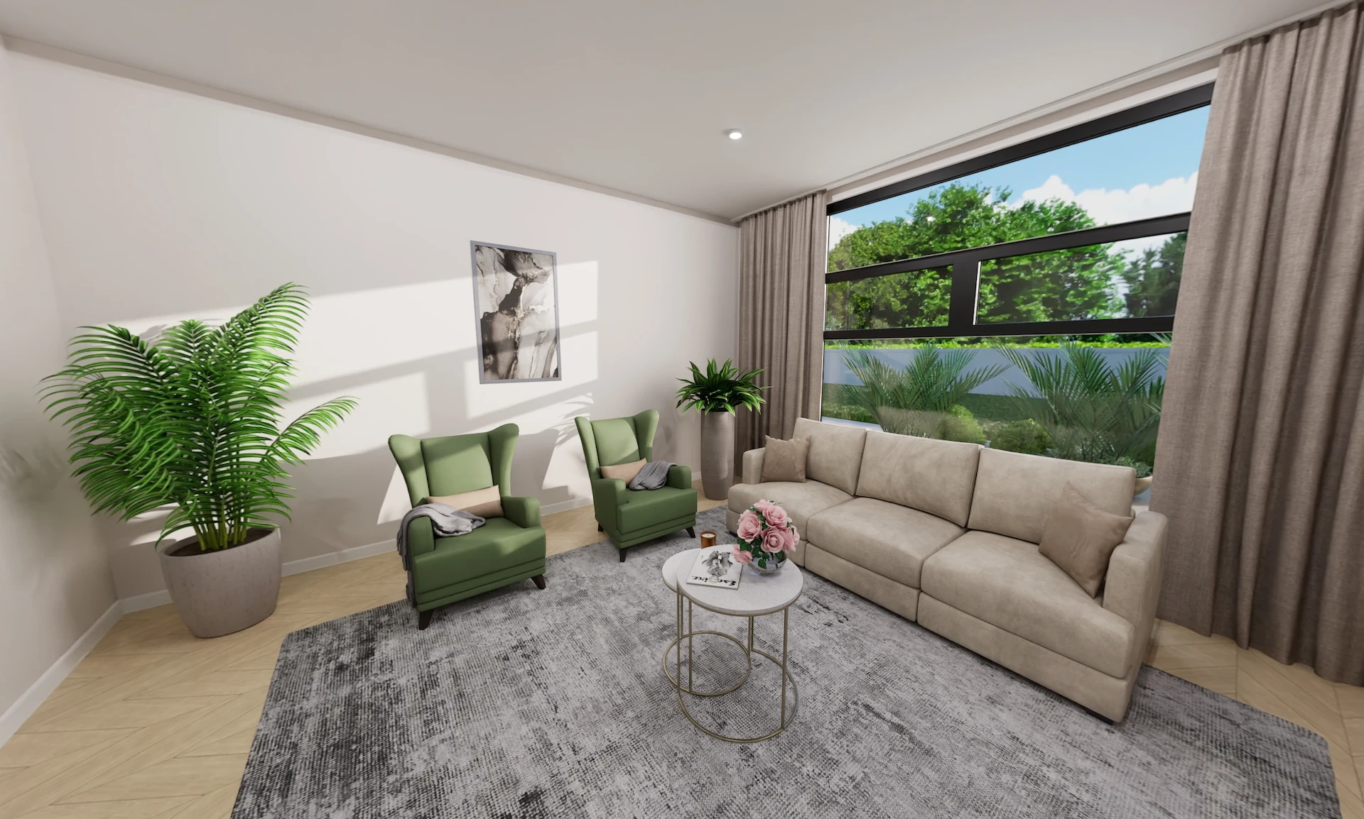 - Two equal-sized living areas (4.5m x 4.5m each)
