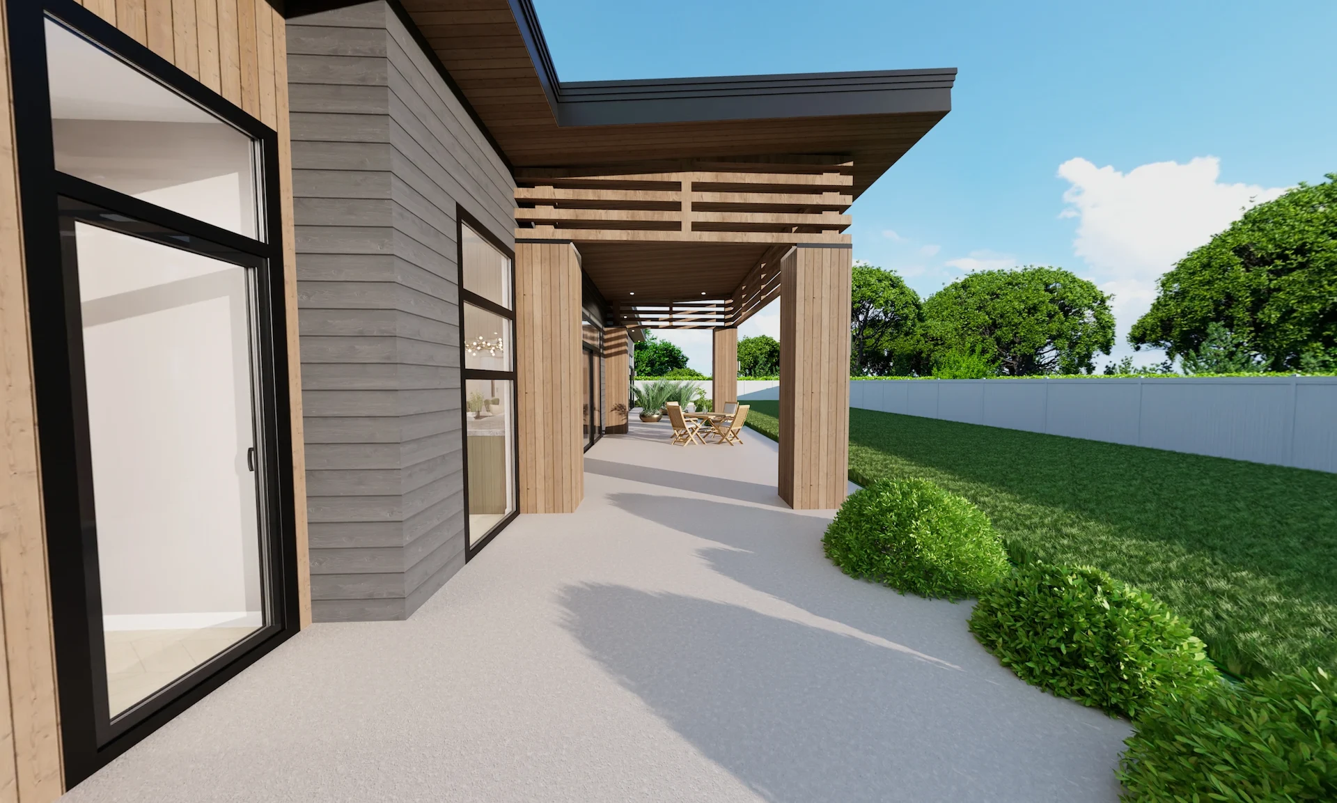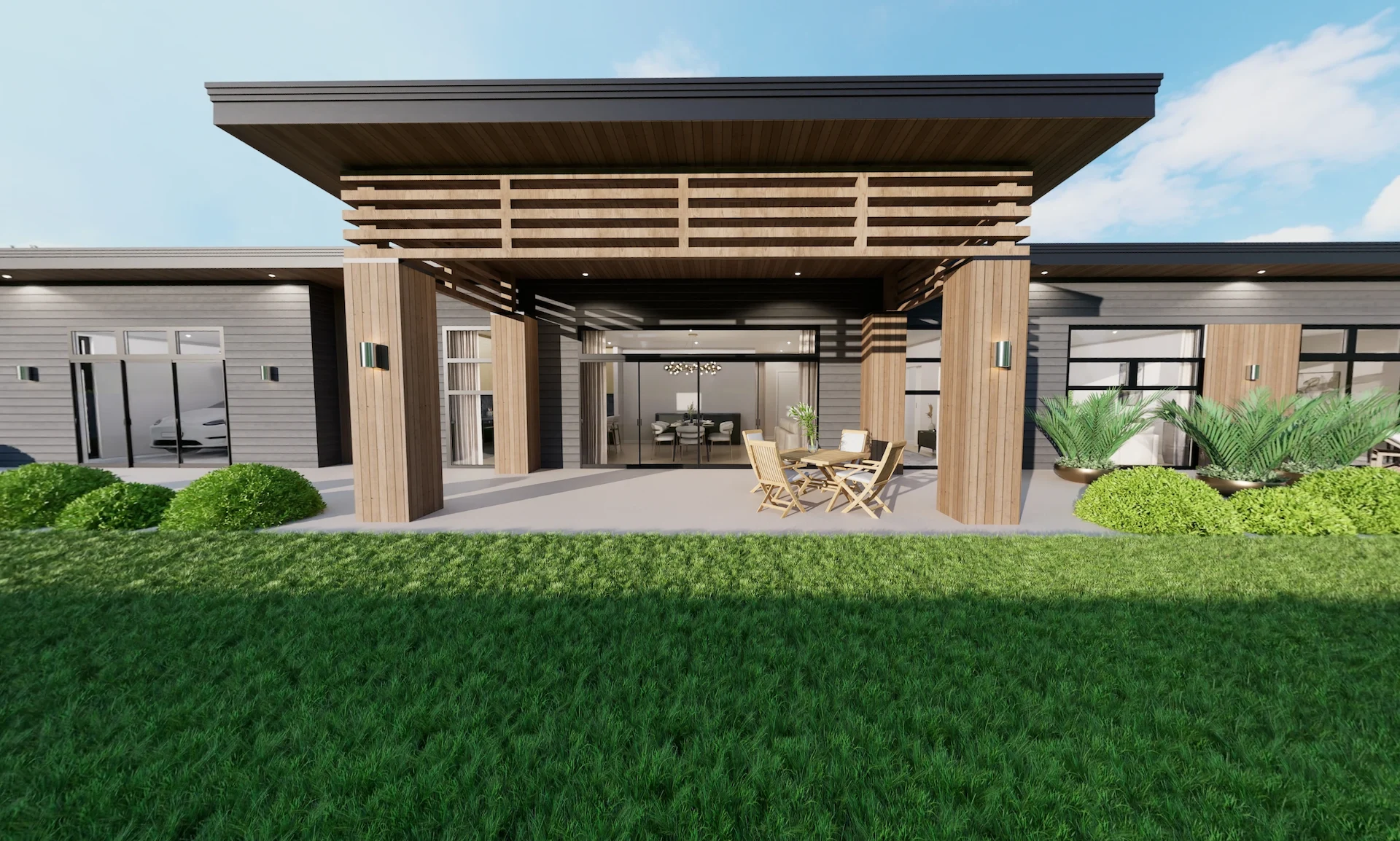 - Feature timber fixed louvre detailing